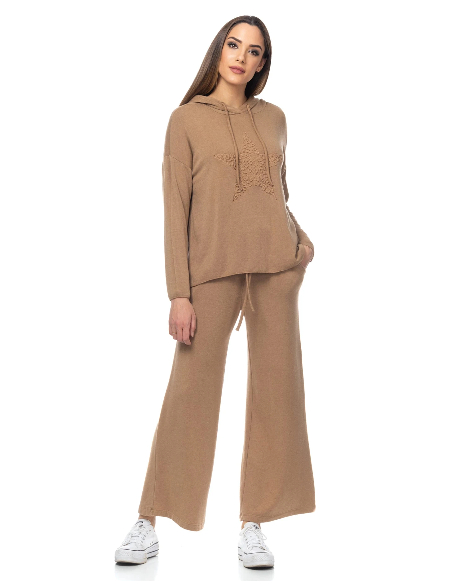 Strickpullover mit Kapuze und Stern-Motiv auf der Brust